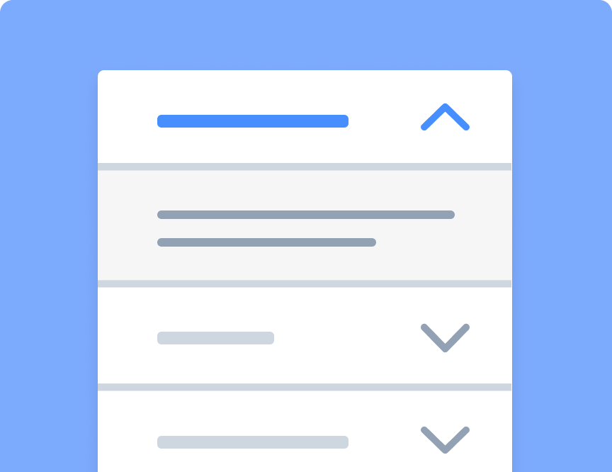 Accordions provide collapsible sections in your content to reduce vertical space while providing a way of organizing and grouping information.